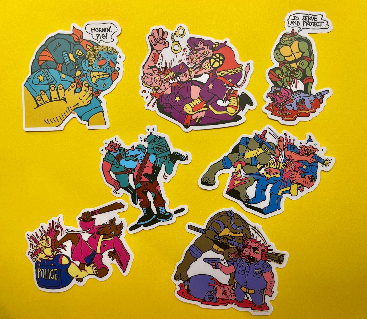6 lil' stickers in a pack. Comes with everything you see here. LImited quantities.